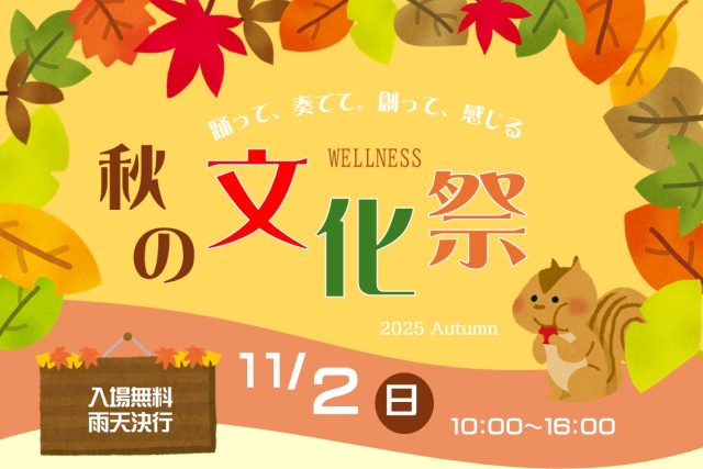 秋のウェルネス文化祭!今年も踊って、奏でて、創って、感じるさまざまな催しをお届けします。入場は無料! ・・・