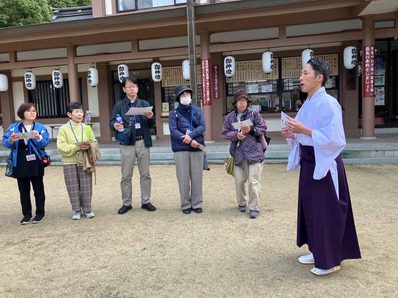日岡神社の御由緒や特殊神事である「亥巳籠(いみごもり)」についてなど、なかなか普段では聞くことができないようなお話が聞けました。