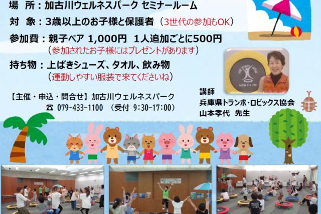 「夏休み特別企画 親子でトランポ・ロビックス」 ミニトランポリンにのって音楽に合わせて運動するよ!じ