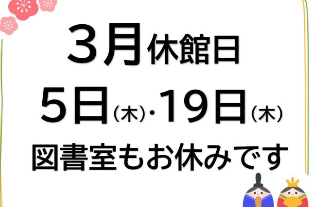 🌸3月休館日のお知らせ🌸 5日(木
