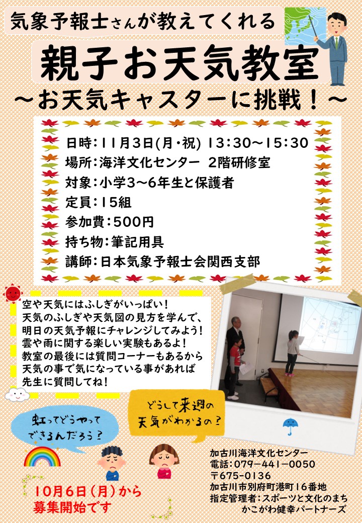 海のがくしゅう会・親子お天気教室・海釣り教室のお申し込みは