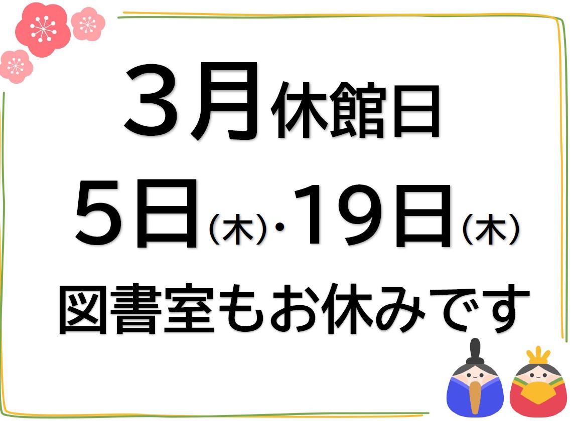 【3月休館日のお知らせ【】