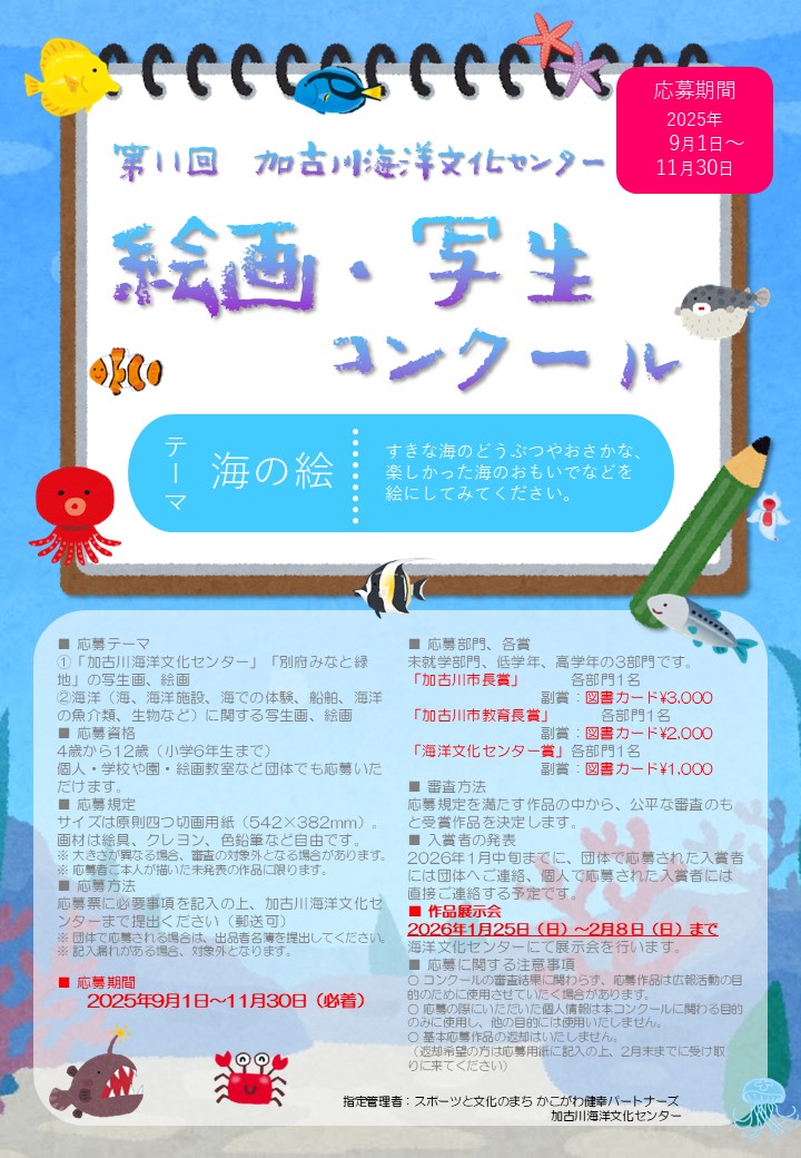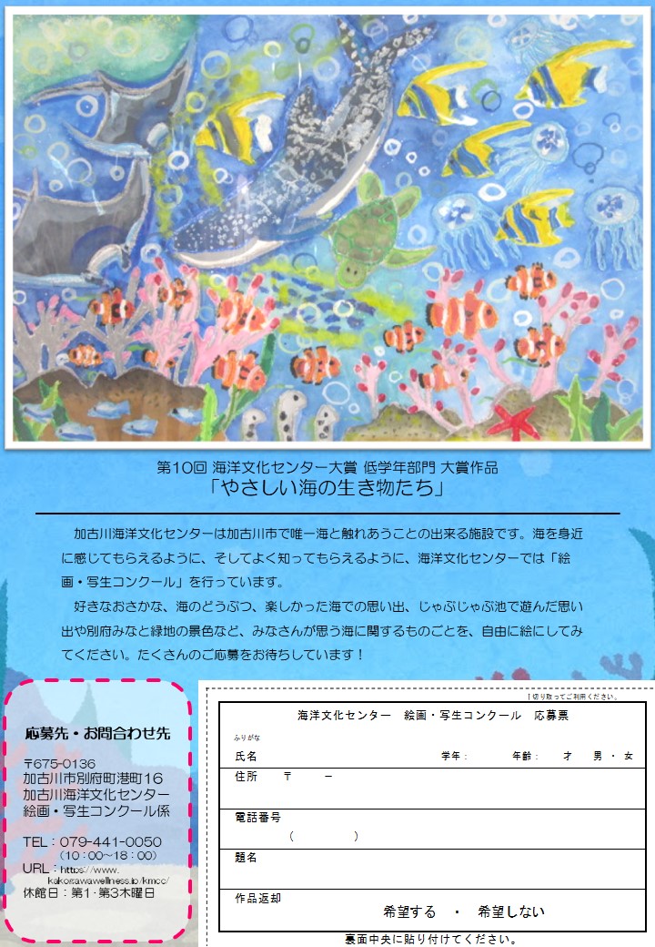 海洋文化センターでは、今年も恒例の絵画コンクールを開催いたします。以下の要項をご確認のうえ、奮ってご応募ください。