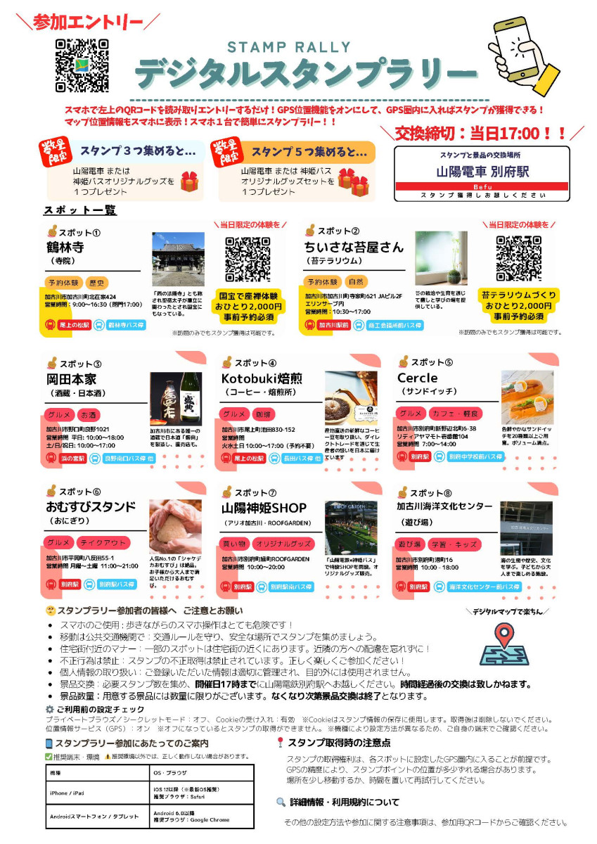 5月10日(土)加古川魅力発見デジタルスタンプラリーのお知らせ 2025/04/21 山陽電車、神姫バスさんが加古川魅力発見デジタルスタンプラリー2025年5月10日(土)に開催されます。 スタンプラリーのチェックポイントの一つに海洋文化センターも入ってます! 無料で参加できますので皆さん是非参加してくださいね!